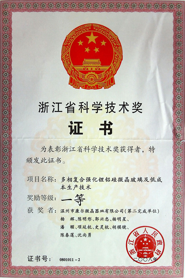 浙江省科學(xué)技術(shù)一等獎(jiǎng)證書